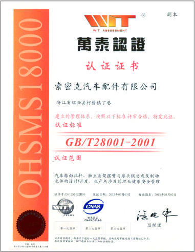 公司已先后通過(guò)IATF16949質(zhì)量管理體系認(rèn)證、ISO/14001環(huán)境管理體系認(rèn)證和OHSAS18001職業(yè)健康安全管理體系認(rèn)證。是“國(guó)家高新技術(shù)企業(yè)”“行業(yè)龍頭企業(yè)”和“全國(guó)百家優(yōu)秀汽車零部件供應(yīng)商”。
